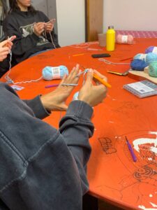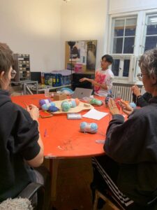 Ende Oktober haben wir gemeinsam mit Clau einen einsteigerfreundlichen Häkelworkshop in einer kleinen Runde durchgeführt, was es allen erleichtert hat, mitzukommen und Fragen zu stellen. Clau begann damit, die grundlegenden Techniken zu zeigen – wie man die Nadel hält, die erste Luftmasche macht und einfache Maschen häkelt.