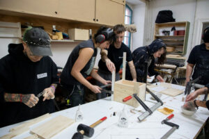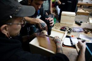 Im Januar leiteten Winnie und Serra vom Schokowerkstatt Kollektiv einen zweitägigen Holz-Workshop in Kreuzberg. Die Teilnehmenden lernten den Umgang mit Handwerkzeugen, das Messen, Sägen und Zusammenbauen von Holz und bauten dabei ihre eigenen kleinen Boxen.